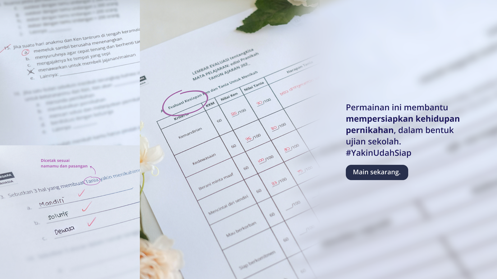 Sebuah permainan untuk mengenal pasangan dan mengevaluasi hubungan, dalam bentuk ujian dan rapor sekolah.