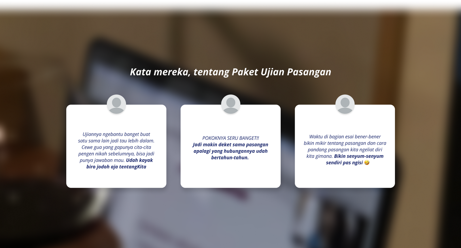 Jika ingin memesan Paket Ujian Pasangan tanpa nama, tuliskan "tanpa nama" di catatan untuk penjual.