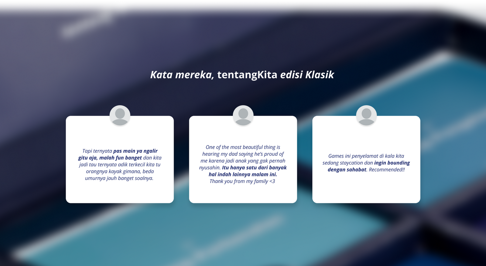 Selamat bermain untuk saling mengenal, mendekatkan diri, dan menelusuri tentangKita.
