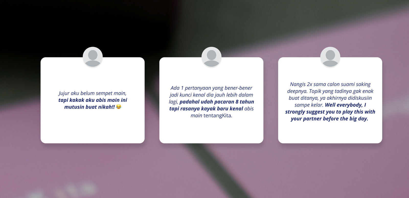 Cocok dimainkan oleh: pasangan yang ingin melangkah ke jenjang hubungan yang lebih serius