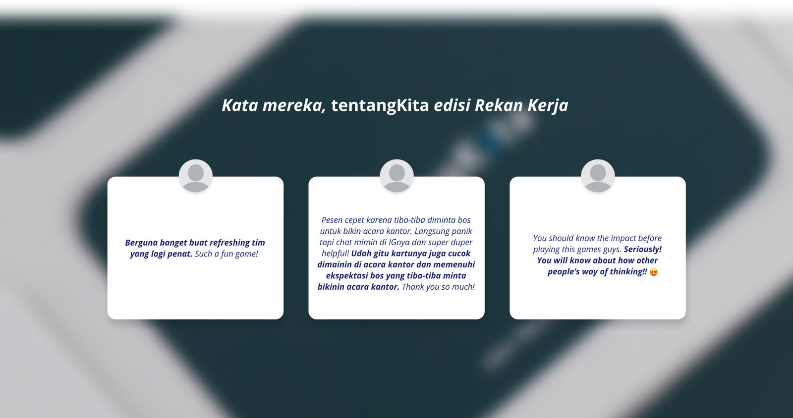 Selamat bermain untuk saling mengenal, mendekatkan diri, dan menelusuri tentang Rekan Kerja.
